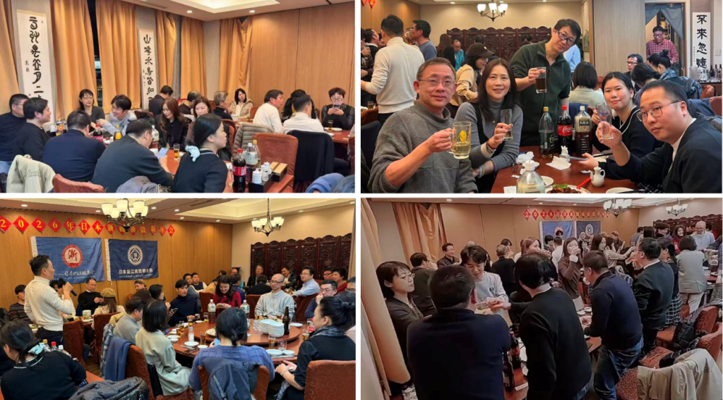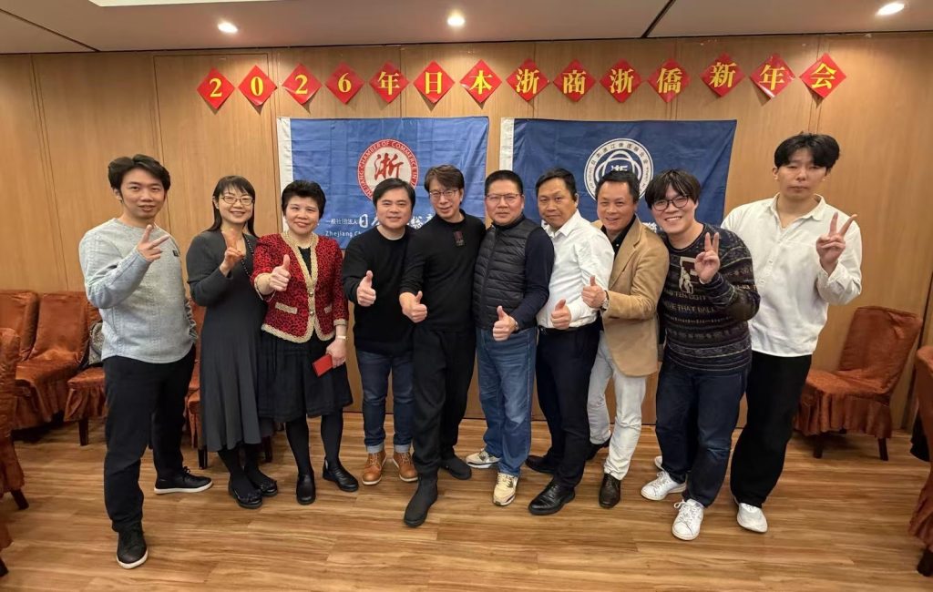 2026年1月10日(周六)晚,日本浙江侨团联合会与日本浙江总商会在东京上野龍城饭店联合举办“2026新年会”。来自浙江各地区的侨团与浙江总商会的会员及家属亲友等50多人欢聚一堂,在温馨热烈的氛围中共祝新年,共叙乡情,共话未来。