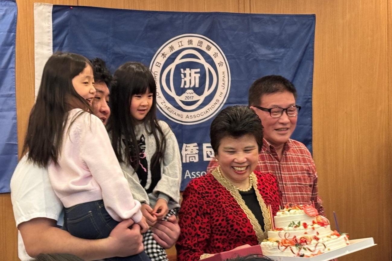 1月10日正逢浙江侨团妇女会会长陈良妹的生日,她的家人准备了一个精致的三层大蛋糕。大家齐唱生日歌,在欢声笑语中送上了最美好的祝福。